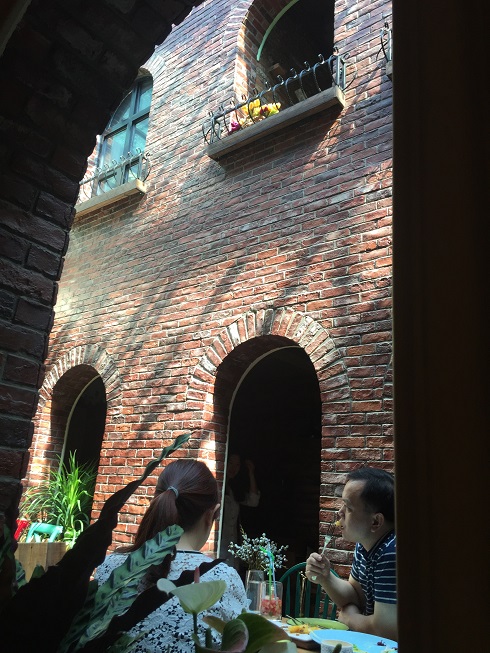路地の奥から子供達の笑い声が聞こえるので入ってみるとメキシコレストランでした。二階で子供達の集まりがあるみたい。中庭が吹き抜けになっていて気持ちいい。