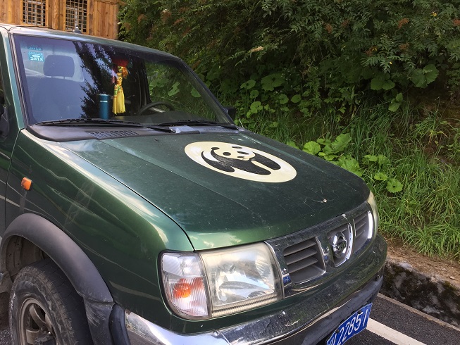 九寨溝で巡回していた車の上にもパンダ。なんだかとってもWWFのパンダに似ている。まさか九寨溝でパクリ疑惑?