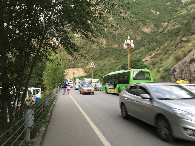 駐車場(のようなところ)は、観光バスがびっしり。これは混雑するはずです。バスに座っていたおばぁちゃん曰く、5時に出てきたのに中に入れたのが9時過ぎ。どこも人ばかりであまり見れなかった。とりあえず帰りの車が出るまでの間、できるだけたくさん見てやる!…私が宿泊したホテルは歩いても行けるような九寨溝に近い場所にあってよかったのですが、遠いホテルだと入り口までに時間がかかります。ここは本当に一本道しかありません。入り口ひとつを目指して多くの観光バスや自家用車がやってくるし、駐車場も効率よく運営されているわけでなく駐車するのも大変みたい。だからこそ朝のあの混雑。もう少し、うまく運営したら効率が上がると思うのだけれど。運転手兼ガイドさんに、道をもう少し作ればいいのに…と言うと、この道だけでも自然をずいぶん犠牲にしている。今、綿陽からの道を工事中だけど、道は整備しなくていい…とのたまう。じゃあ、観光客を制限すればいいのに…4万1千人は多すぎて対応できていない、と言うと、最低1日4万人はいないと、外の4万人を養えないと言う。…意味がよく分からないけど、そういうことらしい。でも周辺で商売しているのはチベット族でなく漢民族だと言っていました。