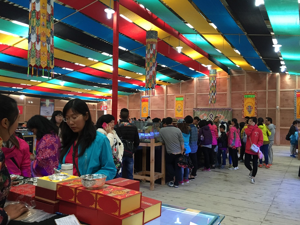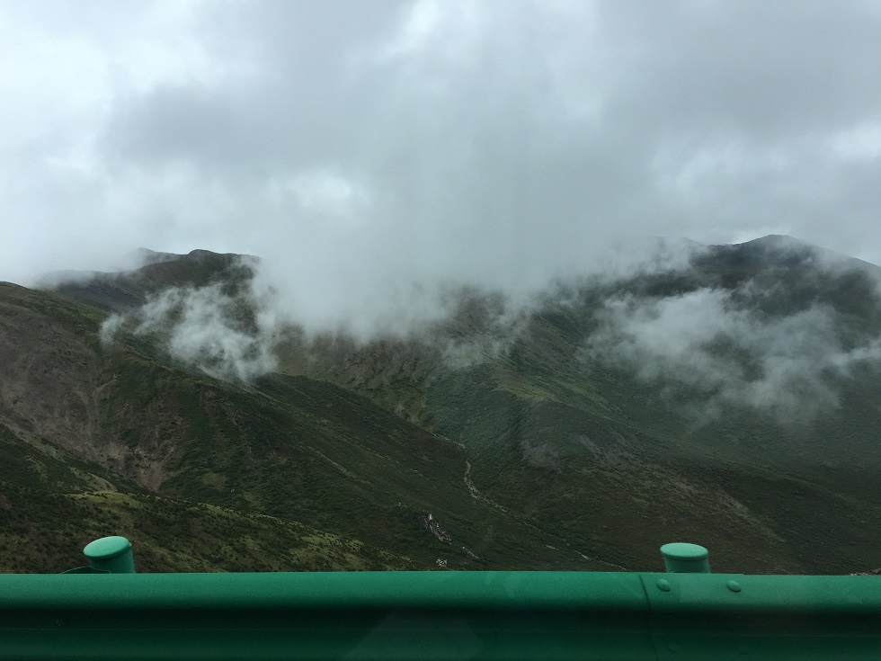 ここは標高が高いせいか、太陽が近い感じです。帰り道、日焼けしないように、ほっかむりをして歩いていると、今朝方はひざ掛けや自撮り棒を売っていたオバちゃん達が今度は果物を売っています。ここではあまり果物は採れないそうですが、成都等から仕入れた果物を売っているそうです。青りんごはとれるらしい。